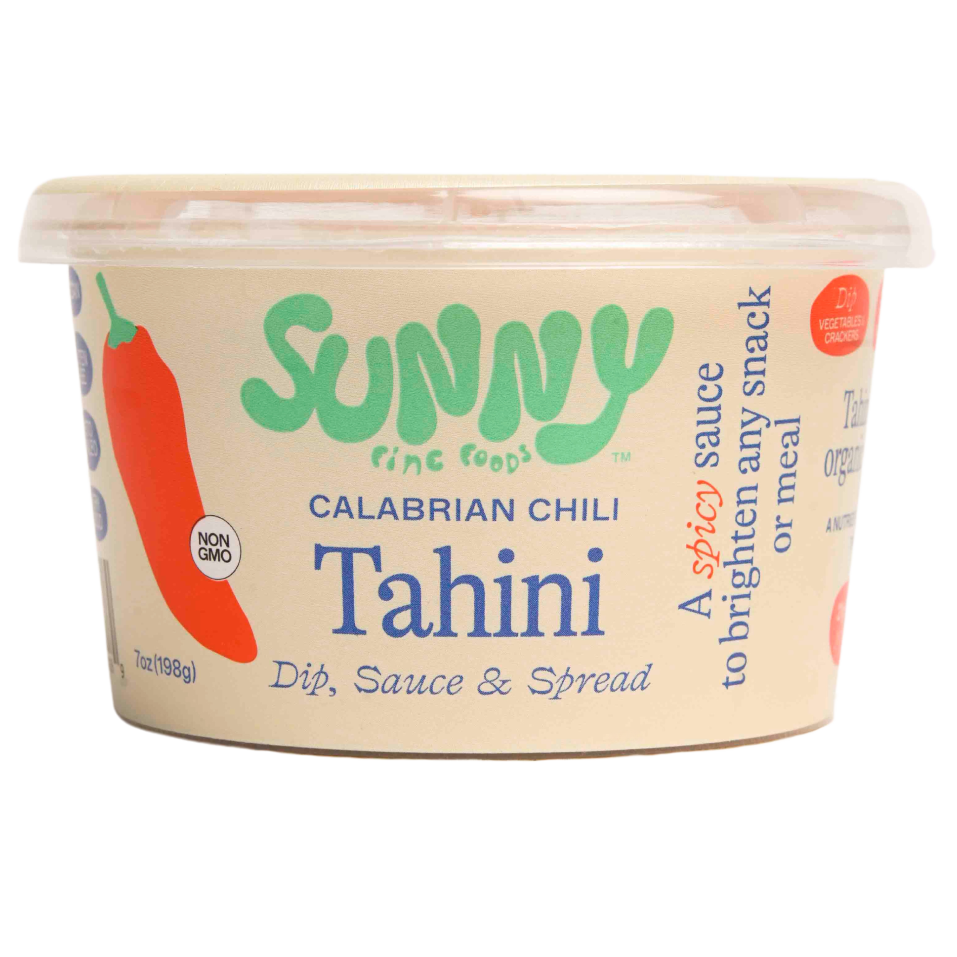 tahini (ground sesame seeds)*, filtered water, lemon juice*, crushed Calabrian chili peppers (peppers, sunflower oil, extra virgin olive oil, salt, vinegar, basil), garlic*, sea salt, spices* *organic (Contains: sesame)